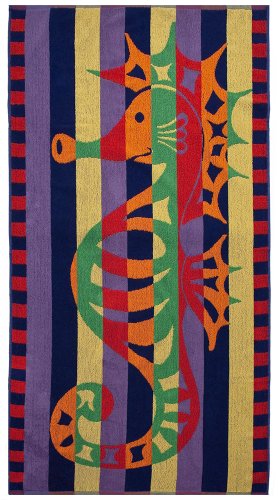 Sea Horse Blue Multi - Terry Jacquard Beach Towel size 30x60 - 400 grams 100% Pure Ringspun Cotton - Brilliant intense vibrant colors - Highly absorbent easy care machine wash - Use for picnic poolside or as a colorful bath towel - Save 53% Review