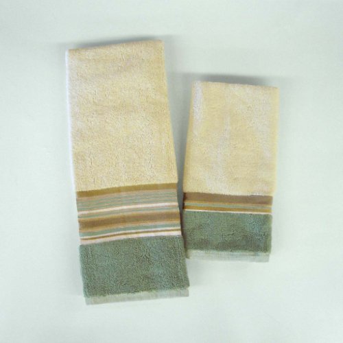 The muted colors of the Sand-Sea Stripe coordinate have a contemporary southwest feel. Shades of blue, green and brown offer warmth to any bathroom. Read more...