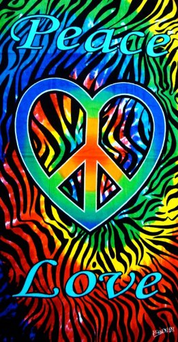 Love-n-Peace Zebra Tie Dye Beach & Bath Towel. Our collection of high quality velor beach towels are perfect for all you wet and wild adventures and are as unique as you are. Each towel features detailed prints that are fade resistant on the velor portion of the towel. Each towel has a printed super soft velor side and a plain white terry cloth side so you can dry off quickly and then stay warm with the fuzzy velor texture. Each towel measures a large 30'' X 60''! These towels are perfect for every day bath use and are also great for time on the beach or pool. Bring them to the beach and show your unique style with these great beach and bath towels. Read more...