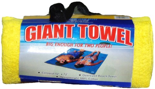 Plush, strong, absorbent terry towels.52" x 72", Giant towel, big enough for 2 people. Heavyweight 100% cotton with freecarry handle. Read more...